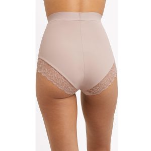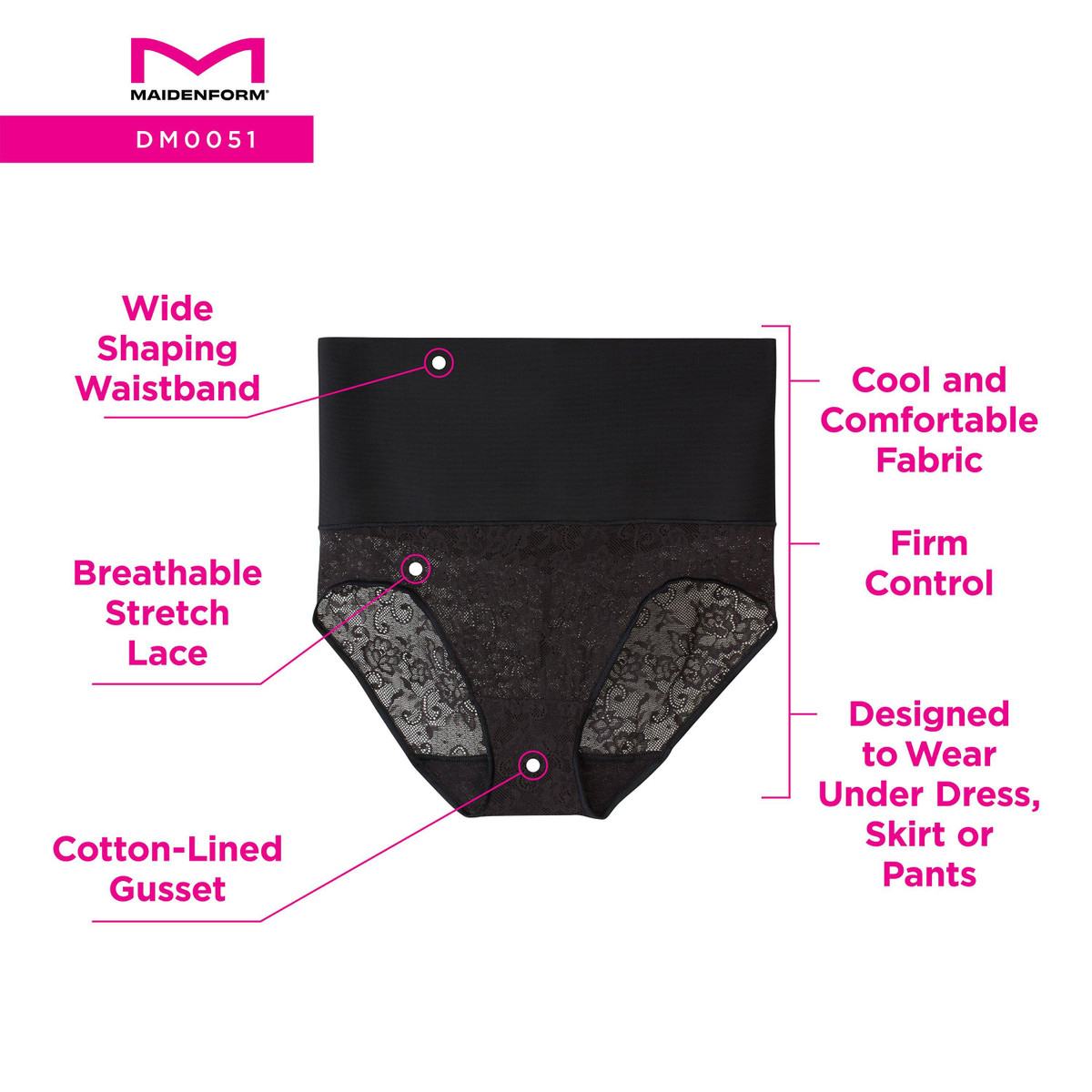 Looking for firm control shapewear with all-day comfort? Youve found it. Part pretty panty and part firm-control shapewear, this shaping brief silhouette, is available in allover fabric or with a feminine stretch lace panty and provides full coverage in the front and back. A wide, toning waist panel targets your tummy and hips for a smooth look. The Smart Comfort® waistband shapes and holds but won’t roll, dig, or pinch, while the cotton-lined gusset adds softness just where you need it.