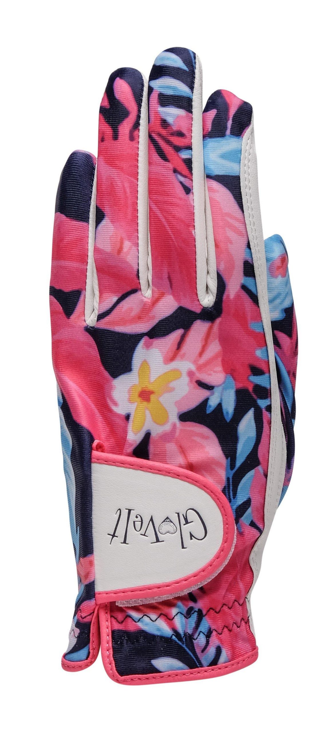 Put the love in glove! Show off your fashion sense and personality with the Tropicana Glove It golf glove. Glove It golf gloves are available in vibrant solid colors and our signature prints. Each glove is made of stretch lycra with a soft cabretta leather palm. Glove It golf gloves offer UV50 sun protection, maximum breathability, and comfort.