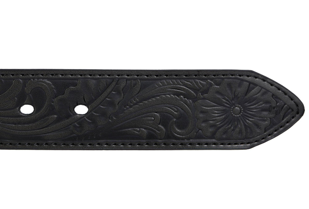 This adjustable belt is crafted from genuine leather and features a detailed embossed design for added style. With its classic look and comfortable fit, its perfect for both everyday wear and special occasions. A timeless accessory with a touch of texture.