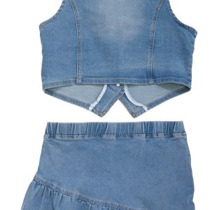 YMI Big Girls 2 Pc Denim Vest & Pull-On Skirt Set