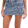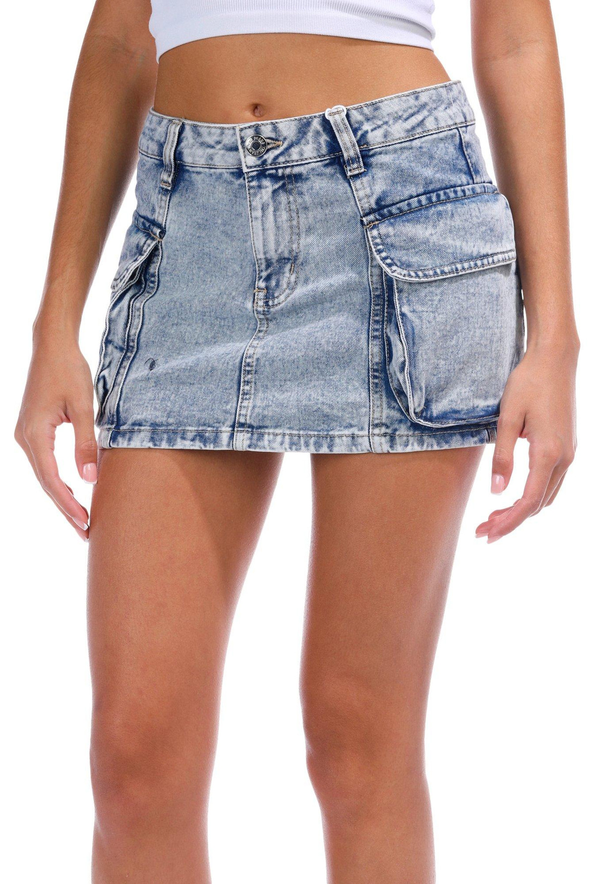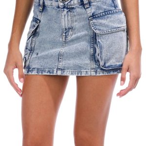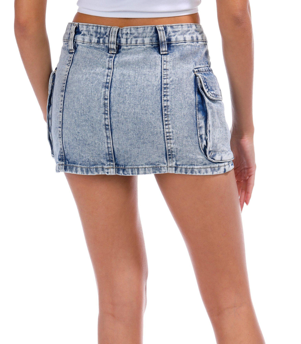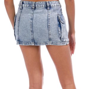 YMI Juniors Mid-Rise Washed Light Denim Cargo Skort