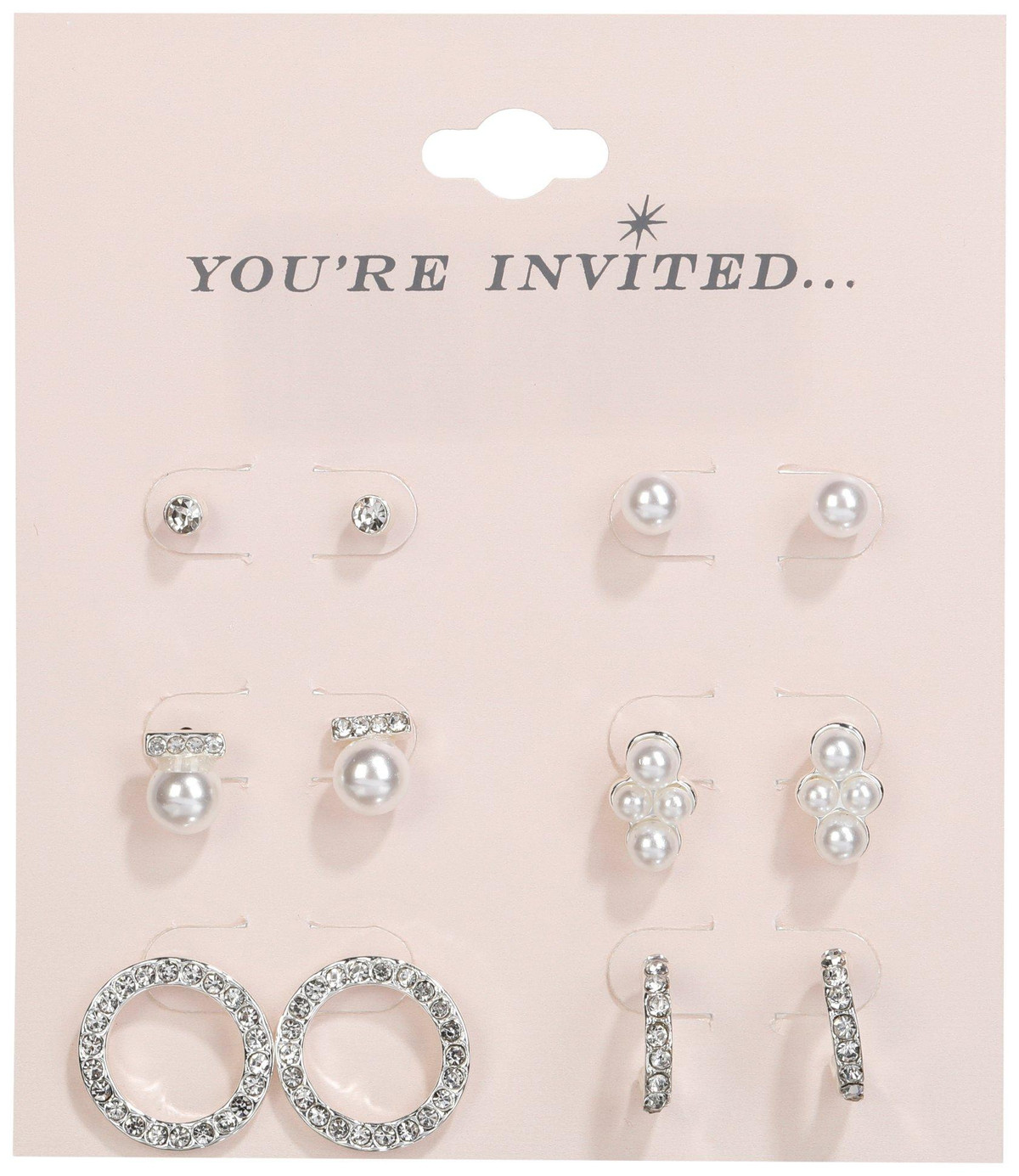 Add timeless charm to your jewelry collection with this 6-piece faux pearl stud earring set. Featuring a variety of sizes, these classic pearl-inspired studs offer versatile styling options for everyday wear or special occasions. Crafted for comfort and shine, each pair brings a polished finish to any look. Perfect for mixing, matching, or gifting.