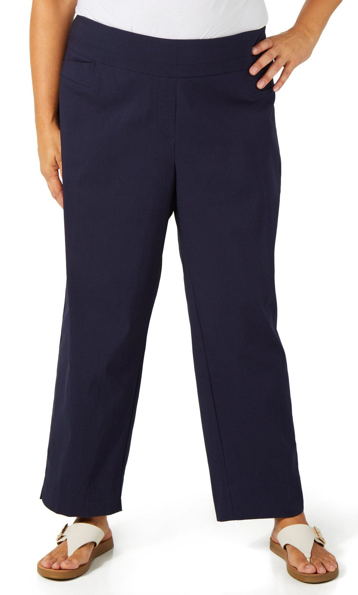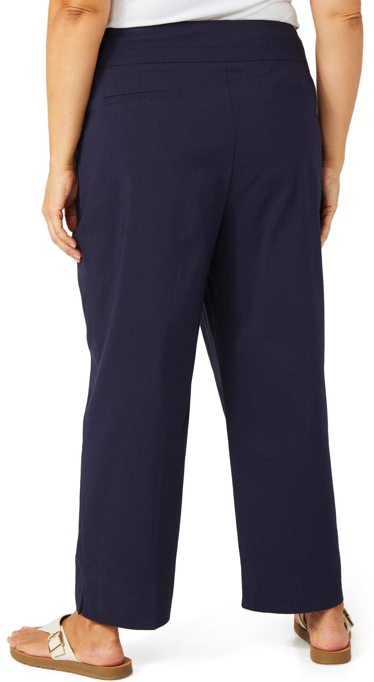 Step into comfort and style with the Plus 27 in Millenium Slim Ankle Pants. Crafted from a blend of nylon, rayon, and spandex, these capris offer a comfortable fit and a stylish solid color. The pull-on waistband ensures ease of wear, while the 27-inch inseam and slim ankle fit provides a flattering silhouette. The faux pocket look adds a touch of sophistication, making these pants perfect for any casual or dressy occasion.