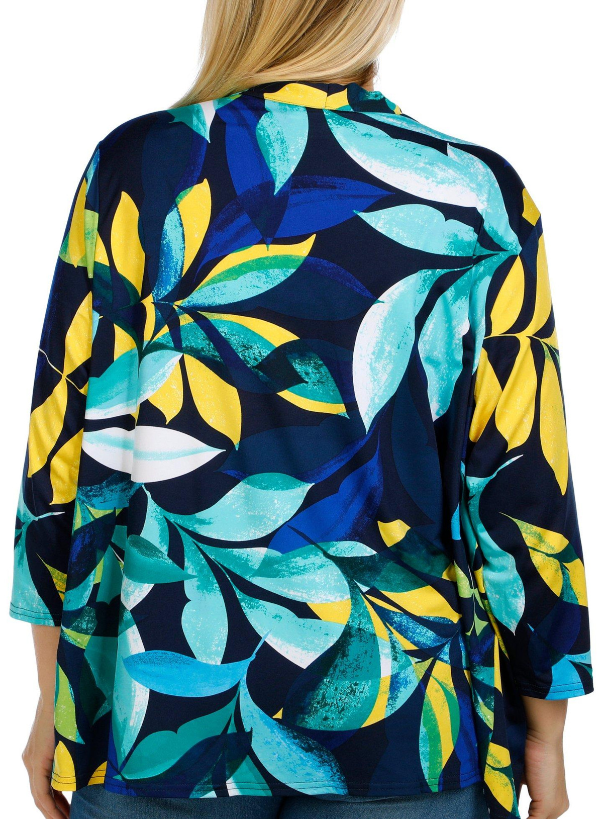 This Plus Printed Cardigan is crafted from a soft polyester and spandex blend, featuring a vibrant leaf print. The open front design and long sleeves make it a stylish and comfortable layer, perfect for adding flair to your work wardrobe.