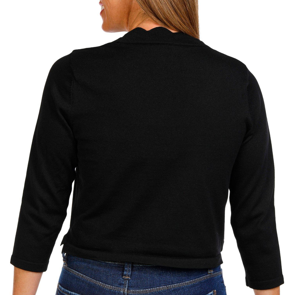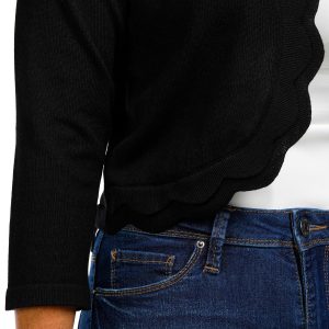 Add a touch of elegance to your wardrobe with our Womens 3/4 Sleeve Cardigan. Featuring a charming scalloped hem, this cardigan is crafted from a soft polyester and rayon blend for a comfortable fit. The open front design and short length make it a versatile layering piece, perfect for any season. Whether dressing up or down, this cardigan adds a stylish flair to any outfit.