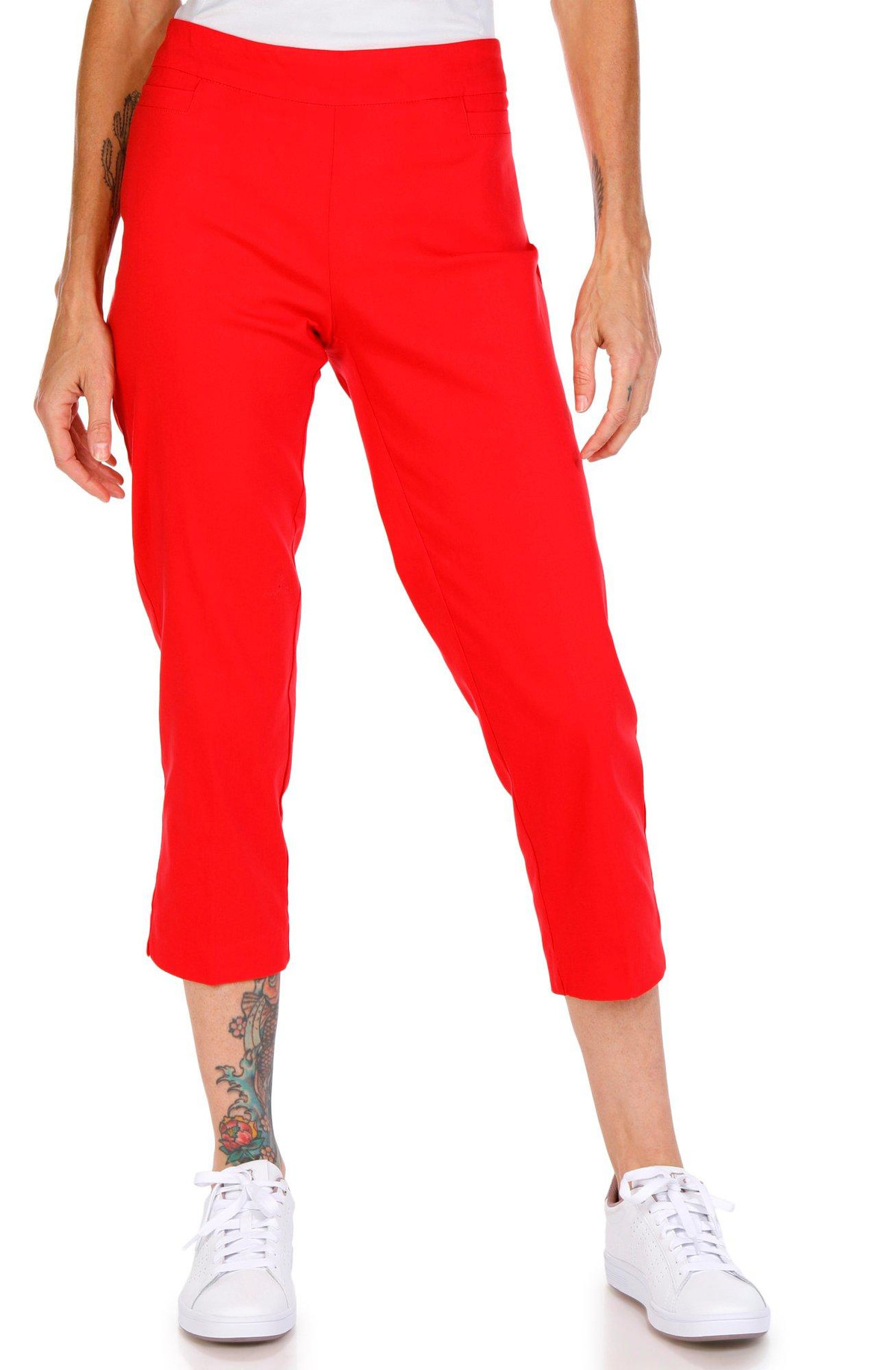 These Ultimate Fit Pants feature a solid color design with a built in tummy panel for a smooth flattering fit. Comfortable and versatile theyre perfect for polished looks that feel great all day. Inseam measures 25 in. Fabrication is 76% rayon, 21% nylon, and 3% spandex.
