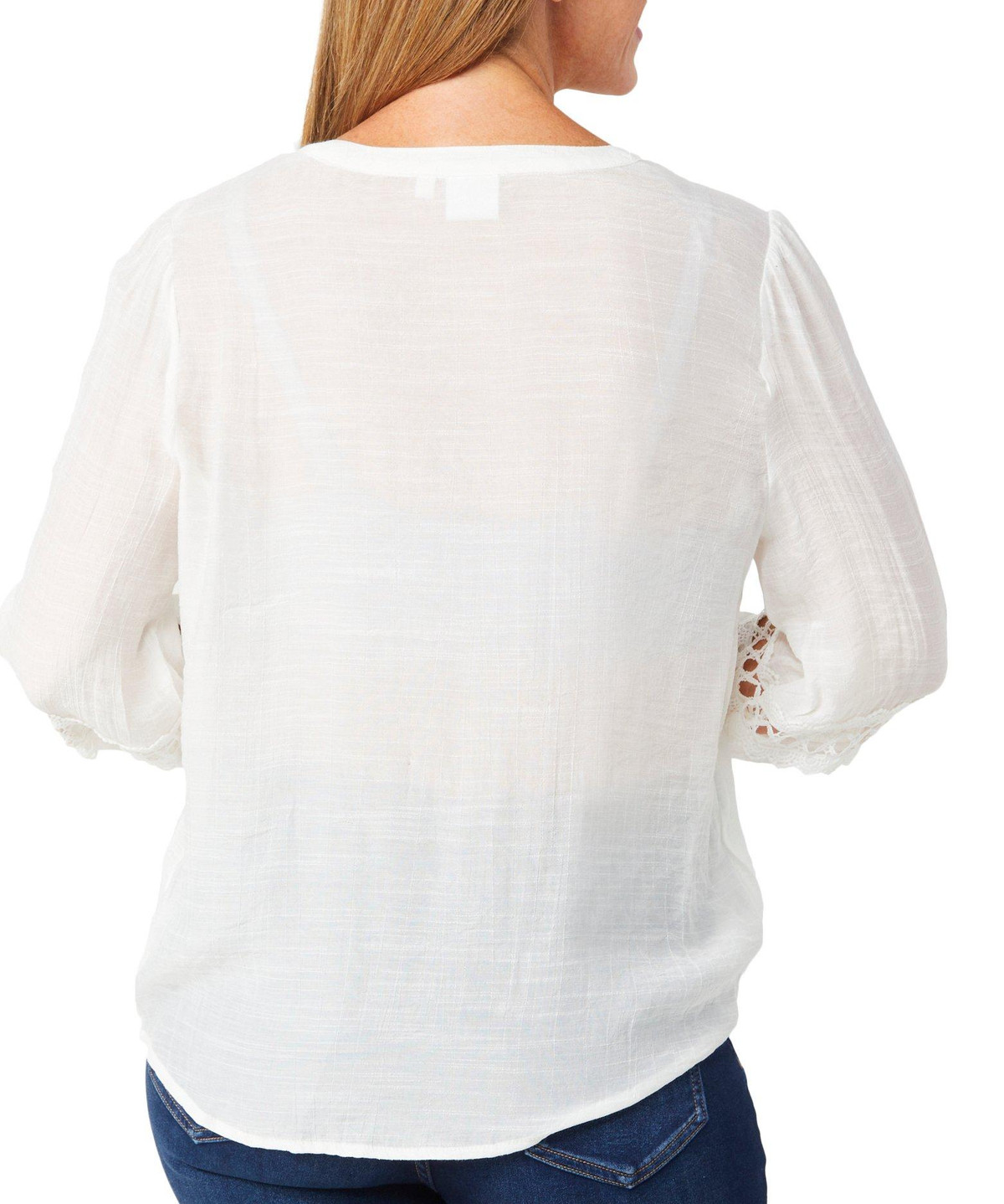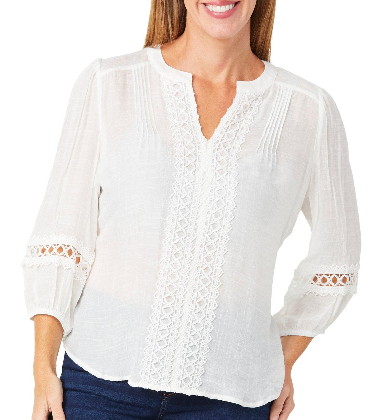Zac & Rachel Womens 3/4 Sleeve Crochet Slub Top