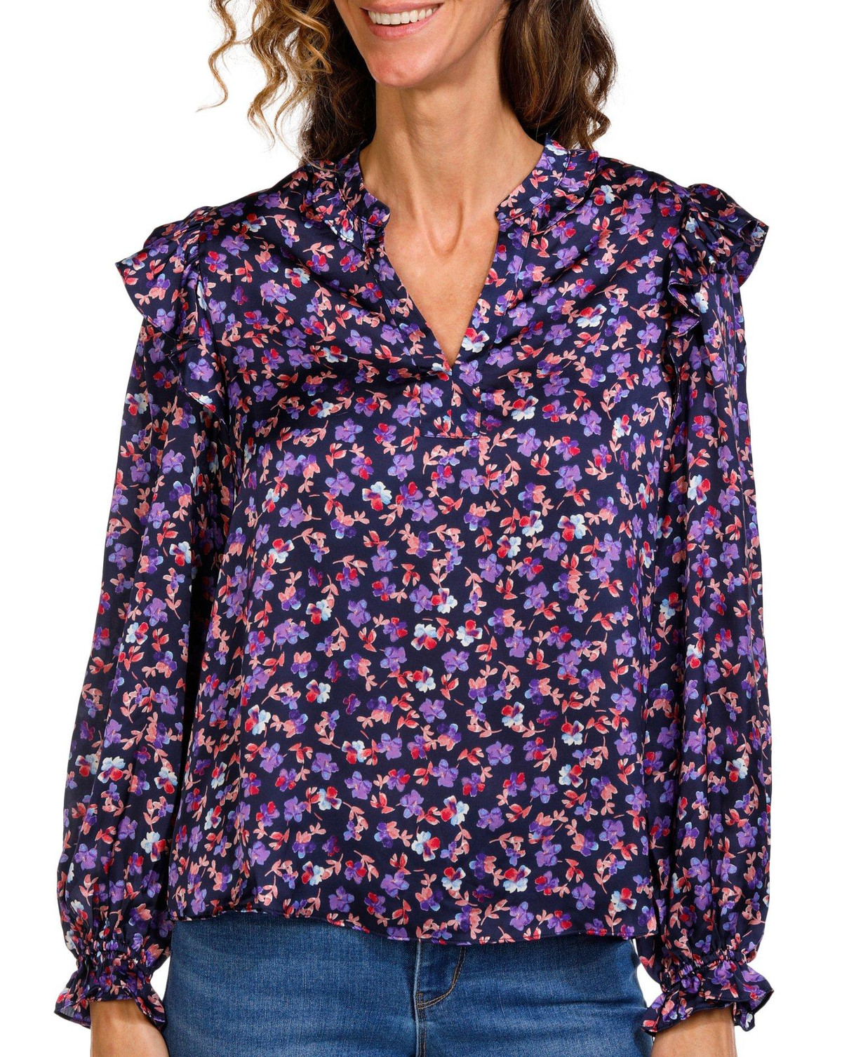 This Peasant Airflow Long Sleeve Shirt features a floral print and delicate ruffle details for a soft feminine look. Made with airy fabric it offers all day comfort and effortless style with a romantic flair.