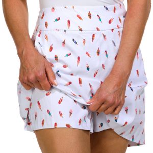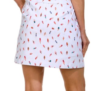This Printed Skort is a fun and functional addition to your wardrobe. Featuring a playful print, it adds a whimsical touch to your look. With double front pockets for your essentials, the skort design combines the comfort of shorts with the style of a skirt. Made from a blend of 76% rayon, 21% nylon, and 3% spandex, its perfect for active days or casual outings, offering both practicality and charm.