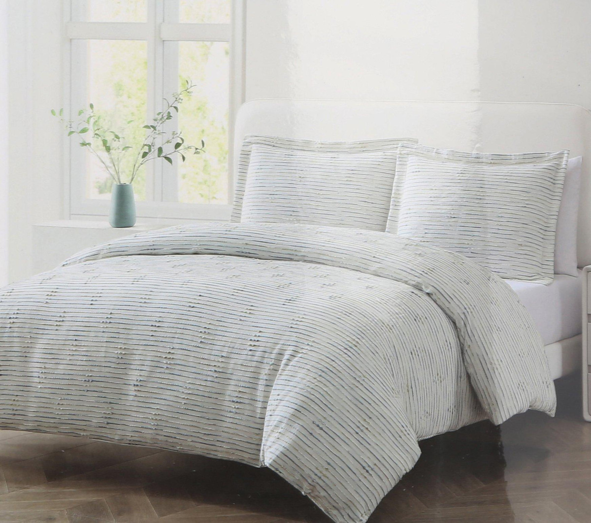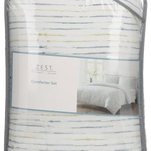 ZEST Kitchen+ Home is designed to help you celebrate life every day. Our passion for quality embodies every product, providing timeless style with a modern touch. Only available at Bealls Florida! This comforter set features a light striped design with embroidered details, 1 standard size comforter (full measurements for each size in traits) and two shams (1 included with the twin set.) Fabrication is cotton and polyester. Certified STANDARD 100 by OEKO-TEX.