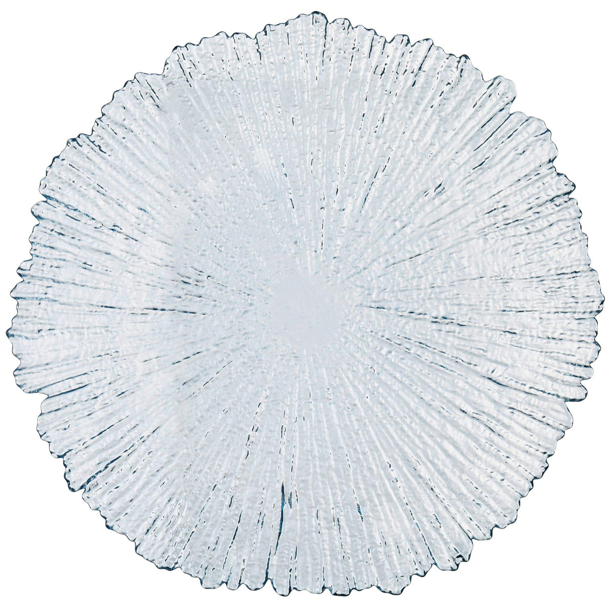 Enhance your dining experience with this 13 in Icy Sapphire Glass Serving Platter. This elegant platter is perfect for serving a variety of dishes. Its rustic design adds a touch of style to any table setting. Made from high-quality materials, this platter is both durable and stylish, making it ideal for everyday use or special occasions. Measures approximately 13 in.