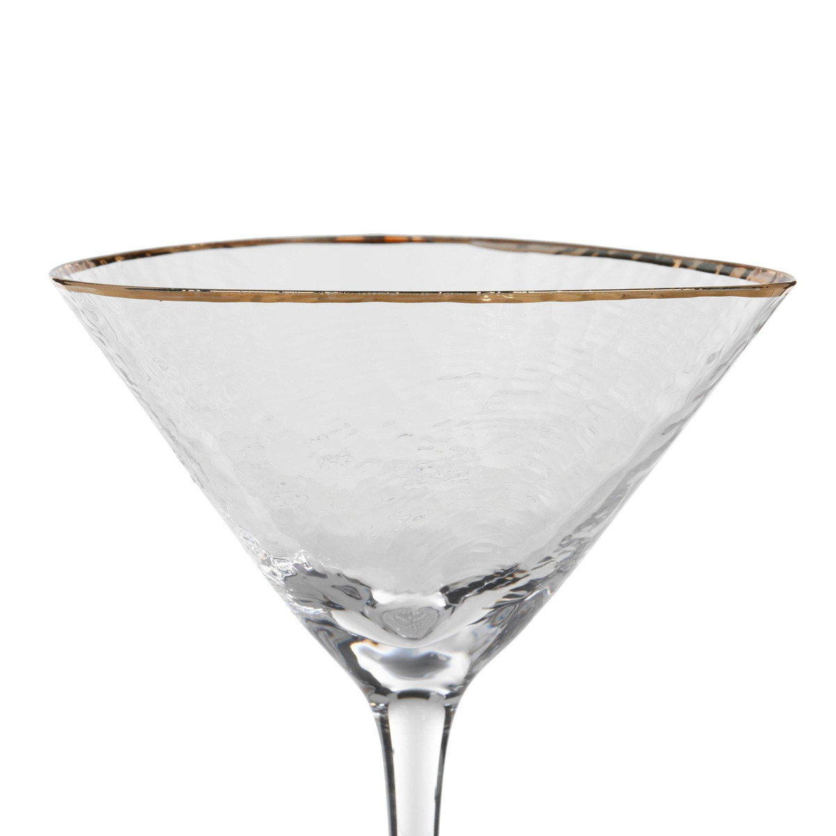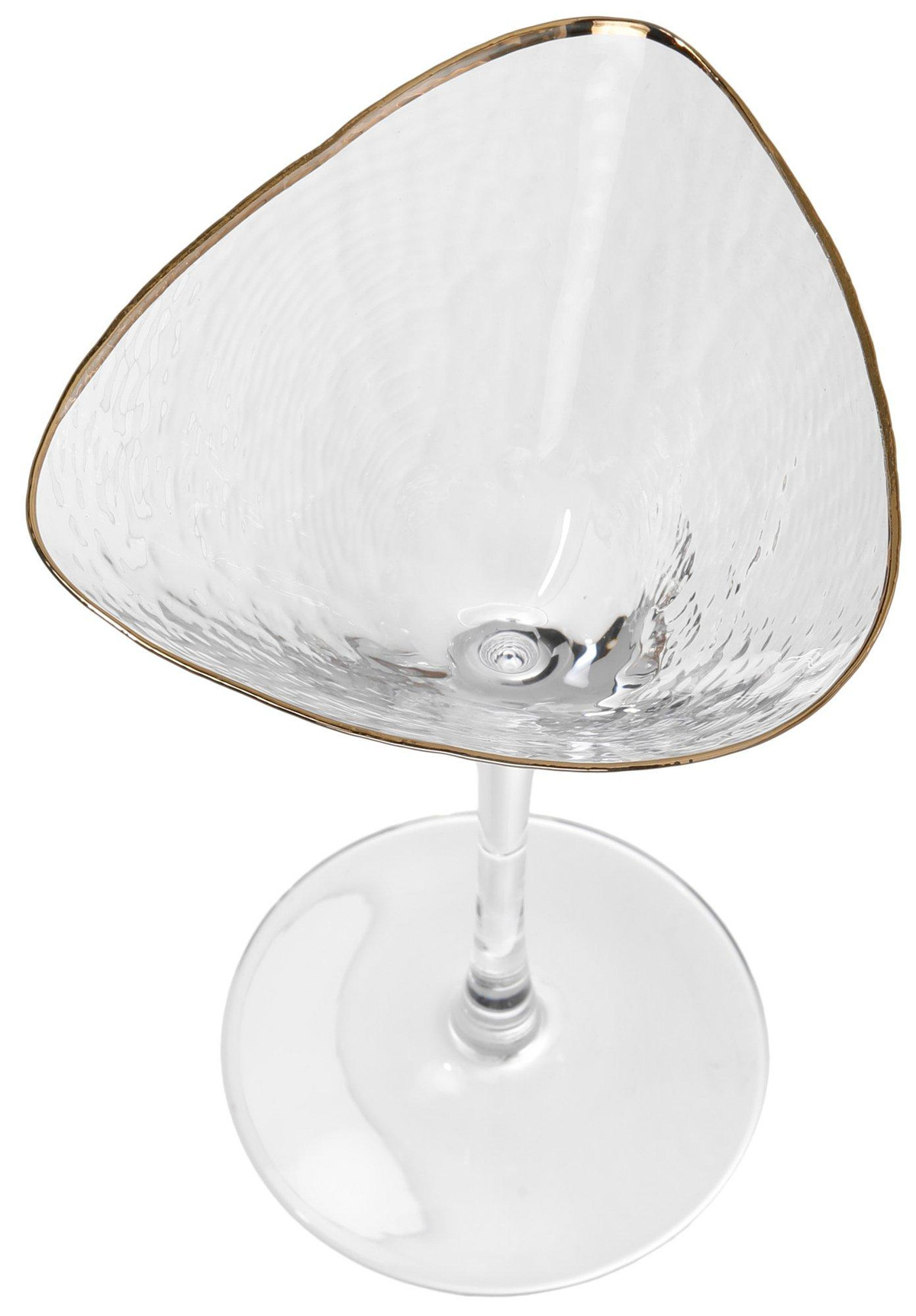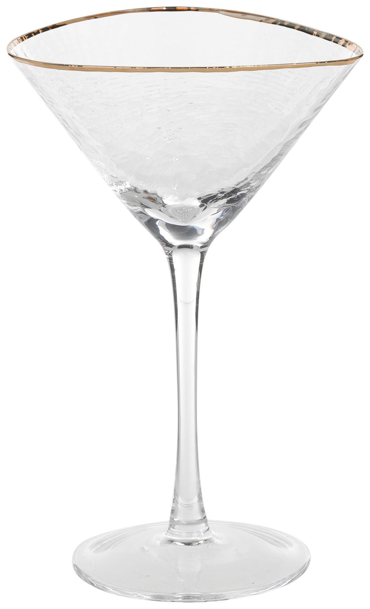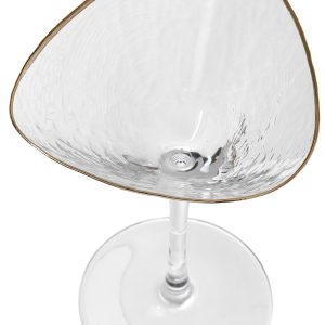 Elevate your entertaining experience with this elegant Gold Rim Triangular Martini Glass. The size is perfect for savoring your favorite martini. The sophisticated gold rim adds a touch of luxury, making this glass ideal for special occasions or everyday use. Measures approximately 7.5 in x 4.75 in.
